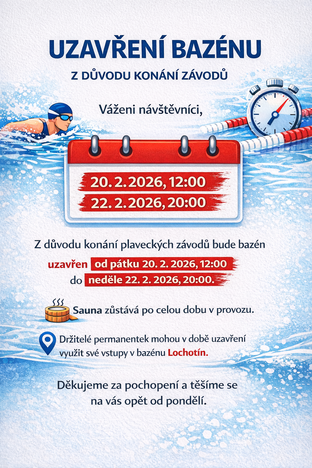 Tento profil vytvořený provozovatelem slouží k rychlé informovanosti návštěvníků bazénu o aktualitách, změnách či aktuálních uzavírkách. Neslouží k diskuznímu fóru.